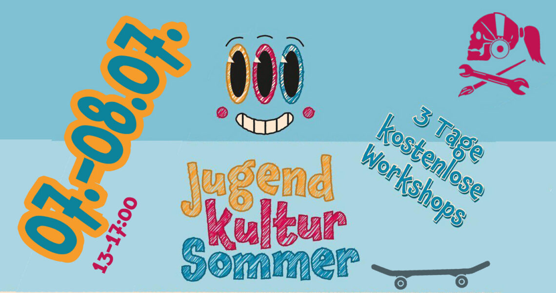 2026 geht der Jugendkultursommer in die 4. Runde! Diesmal starten wir in 2 Locations mit 6 Workshops durch: Theater, Siebdruck, Skateboarden, Musik, Graffiti, Kunstschweißen. Kostenlos! Es gab einen gemeinsamen Chillout-Bereich mit Snacks und alle Teilnehmer:innen durften auch mal in die anderen Workshops reinschauen. 06.-08.07.2026 // Uhrzeit: 13-17:00 // Alter: 10-16 Jahre // KostenlosOrt: Jukze (Königstraße 2a), Kranhaus (Schloßstraße 8) beides in Elmshorn … So schön war es im letzten Jahr: Graffiti: Ihr habt die Ideen, wir die Dosen! 3 Tage lang zeigen euch zwei Writer, wie ihr was Schönes auf die Wand bringt. Von der Skizze auf Papier bis zum fertigen Bild an der Wand werden euch alle Schritte erklärt.…